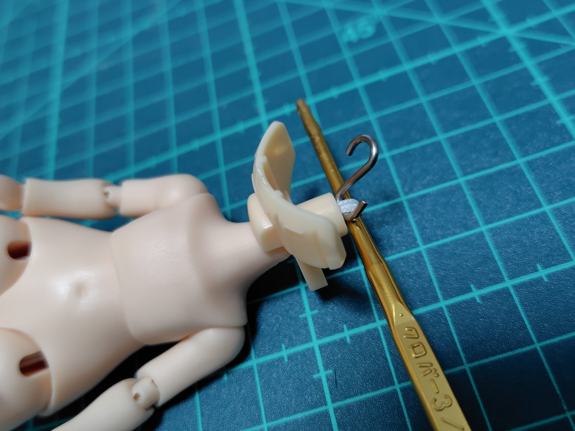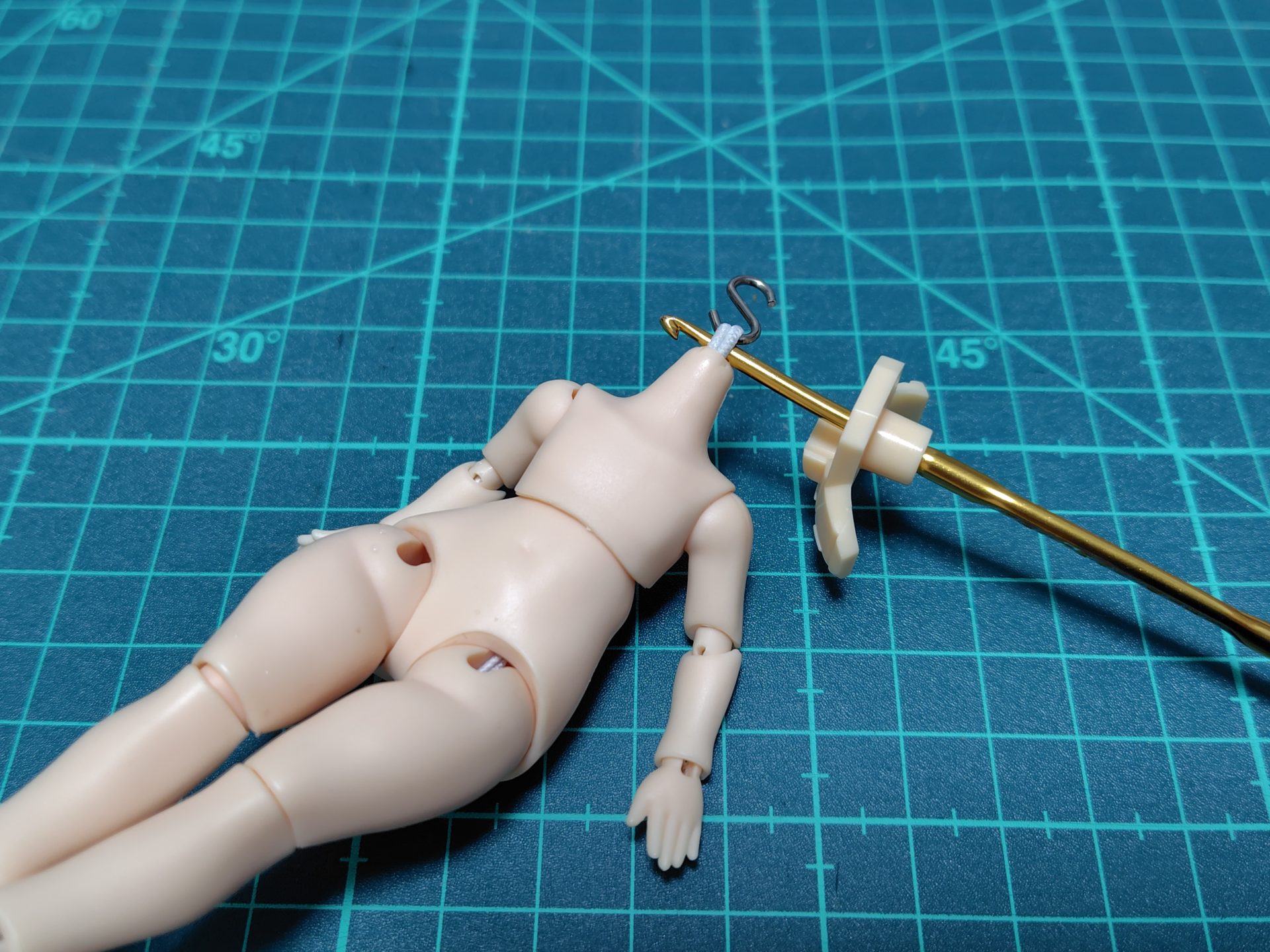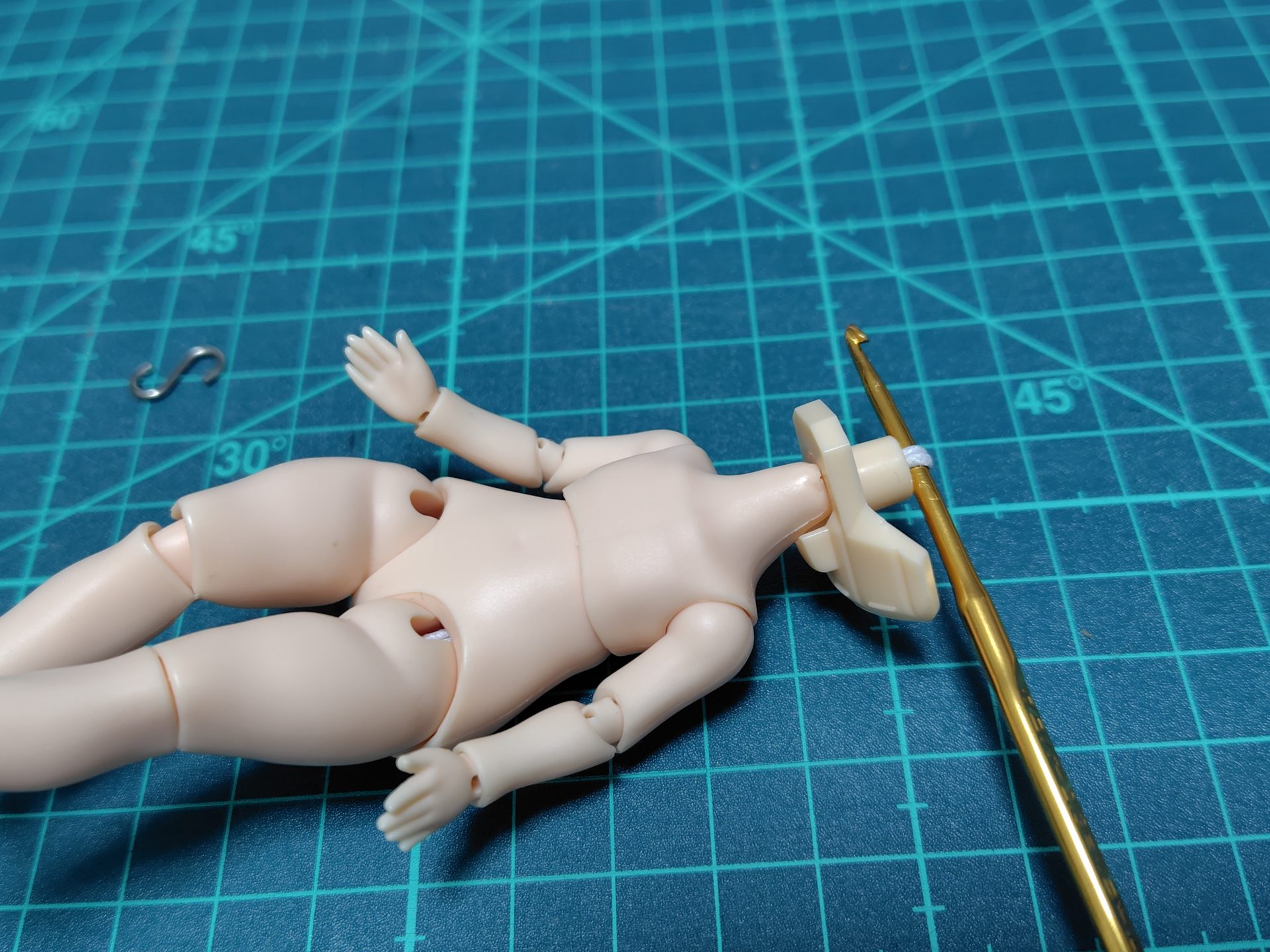 BJDボディと編み針を用意