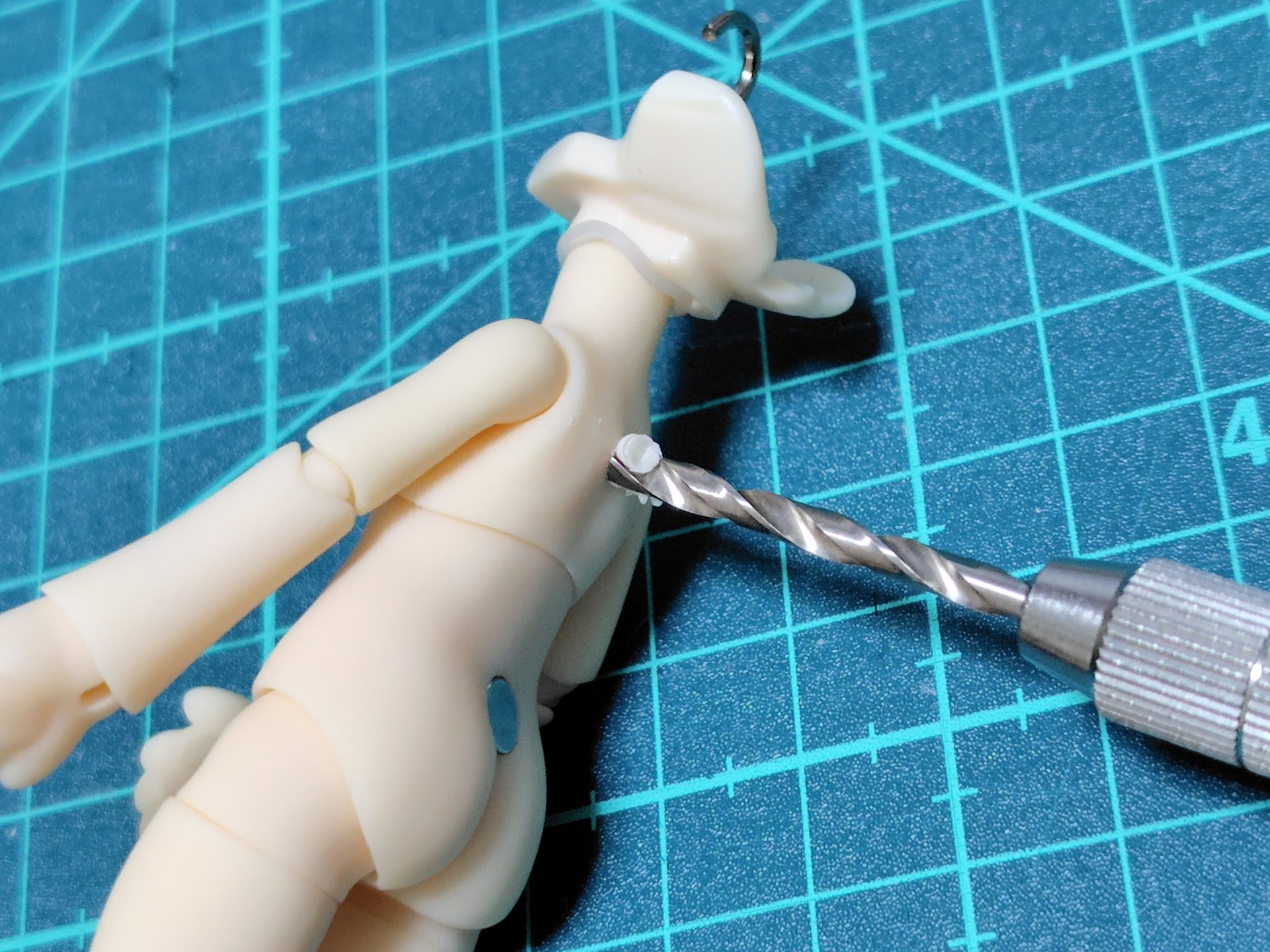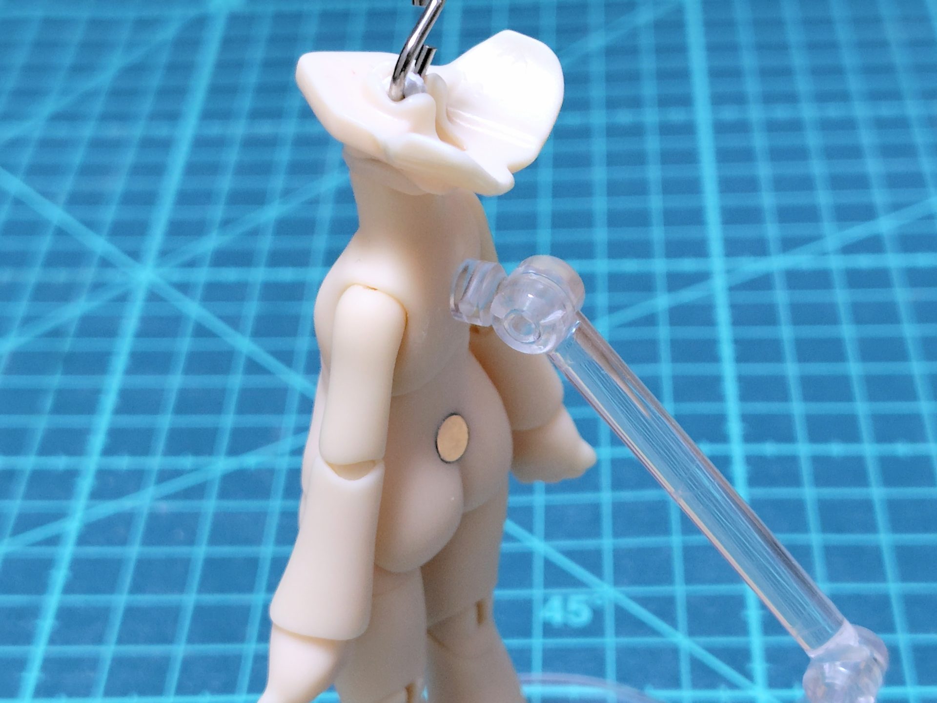 海外BJDは腰をクランプして飾っていたのですが、背中に穴を開けてジョイントを挿すことでかなり安定しました。
