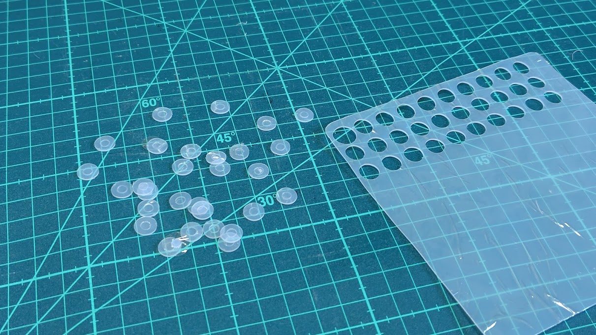 薄手のシリコンは、こんな感じにカッティングマシンを使用して丸くカットしたもの。