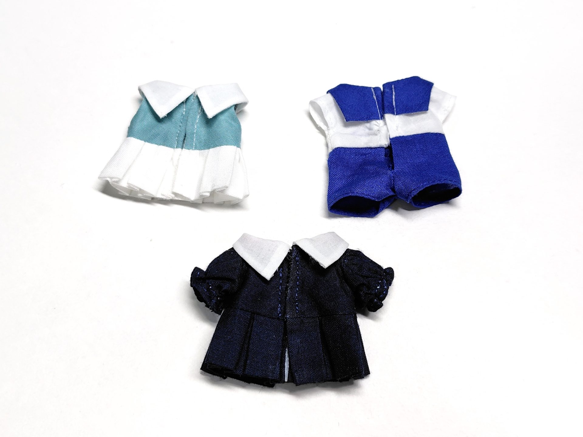 セーラー襟は、とがっているタイプと丸襟タイプの2種類を制作しました。