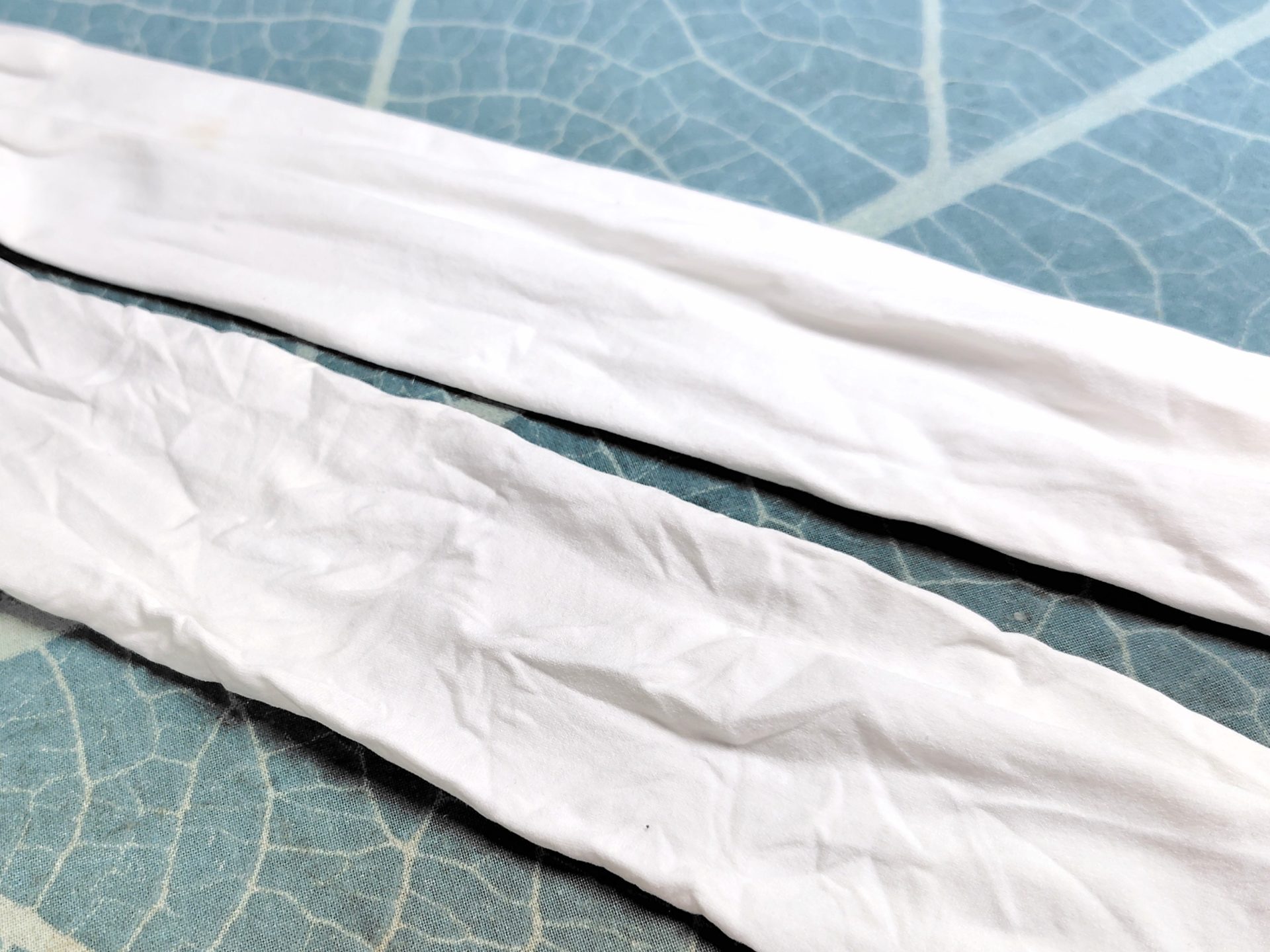 タイツの生地、天竺かな?端がくるくる丸くなるんですけど、このくらいなら平気。