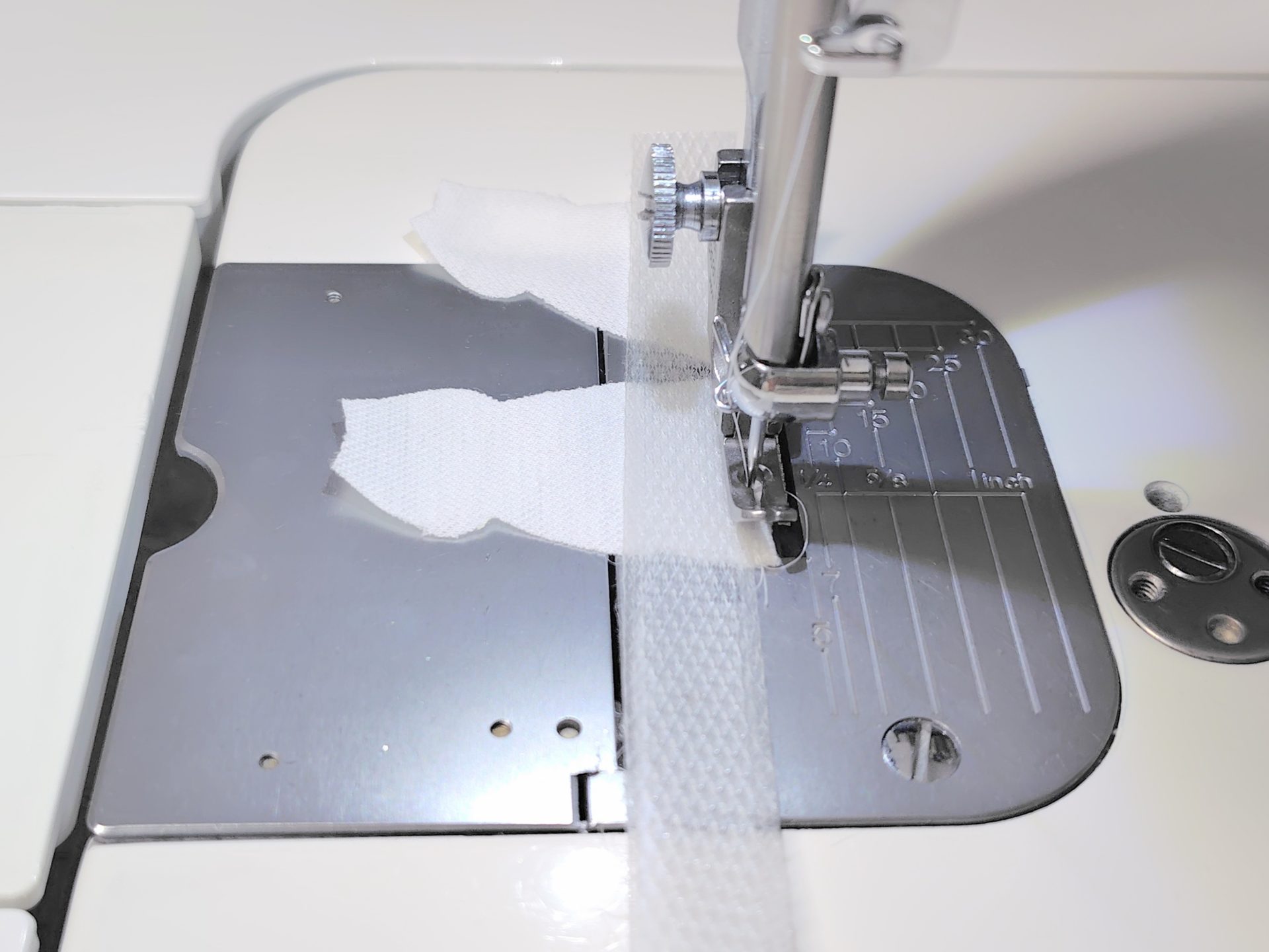 縫い伸びないよう、PPテープを挟んで。