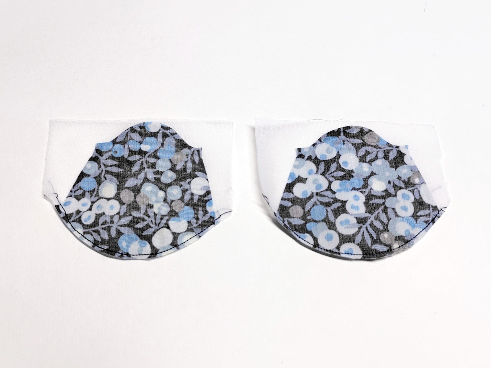 バルーンの袖口カーブを接着芯と中表に縫って、裏側へ貼り付け。